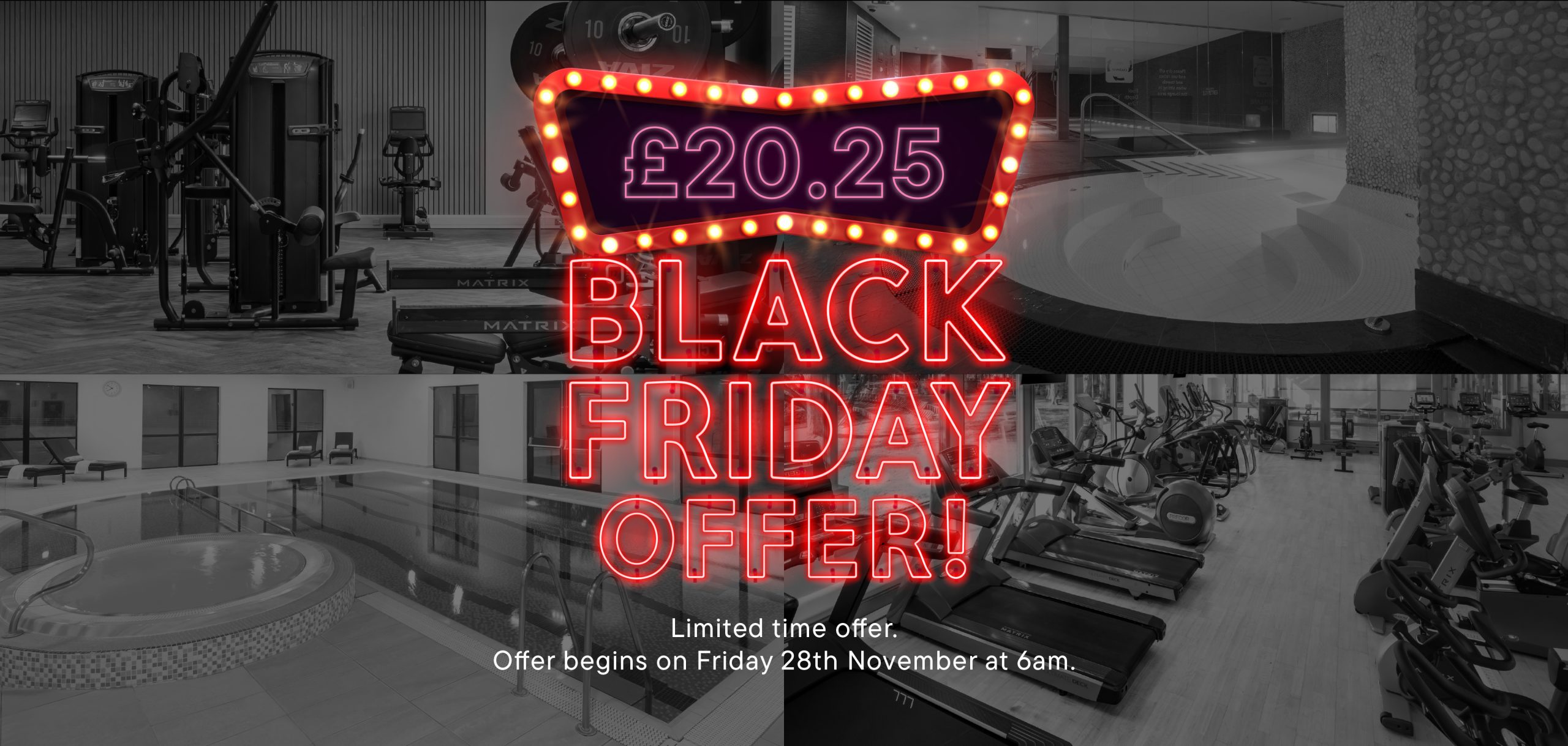 £20.25 Black Friday offer!* Only 25 places available per club! Pay just £20.25 until January! Offer begins on Friday 28th November at 6am. This limited-time Black Friday offer gives you full access to our facilities until January for just £20.25, the perfect way to recharge your body and mind. But be quick! Only 25 places are available in each club! Included: Heated swimming pool*** Fully equipped gym Spa pool Sauna/steam room** Group exercise classes*** Hotel bar/restaurant discount Fill out the form below, and one of our team members will be in touch to help you get started. Terms and conditions apply. LinkedInThis field is for validation purposes and should be left unchanged.Name(Required) First Last Email(Required) Phone(Required)Choose your Club(Required)Please select your clubSpirit Health Club AylesburySpirit Health Club EastleighThe Club FarehamSpirit Health Club GloucesterSpirit Health Club Hemel HempsteadSpirit Health Club LeedsUrban Escape NottinghamThe Club and Spa at DoubleTree by Hilton ChesterThe Club ChesterThe Club SolihullThe Club StratfordThe Club PeterboroughThe Club GlasgowThe Club PlymouthHow would you like to be contacted?(Required)Select all that apply. Phone Call Email Consent We'd love to contact you in the future. Please tick to receive the latest news and offers by email.CAPTCHA Δ *The Club Plymouth Black Friday offer is no joining fee and half price first payment **Steam room only in Nottingham ***selected sites only Offer ends Monday 1st December. We reserve the right to end the offer early. Once the 25 places are sold this offer will end. Our brands